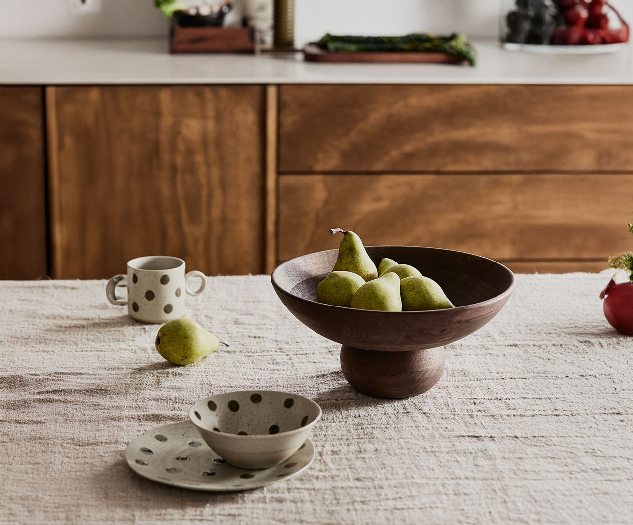 Vinkki! Sekoita mielelläsi keramiikka-astioita, posliinimukeja, lasia, jossa on hiottua koristelua tai kauniita puukulhoja luodaksesi juhlallista tunnelmaa, joka tuntuu henkilökohtaiselta ja harkitulta.