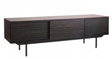 | Materiaali: | joissa kummassakin siirrettävät hyllyt. , jotka sulkevat kaksi lokeroa , TV-taso savubetonoidusta tammi-viilusta MDF:stä. Mattamustat jauhemaalatut metallijalat. 1 laatikko ja 2 liukuovia |